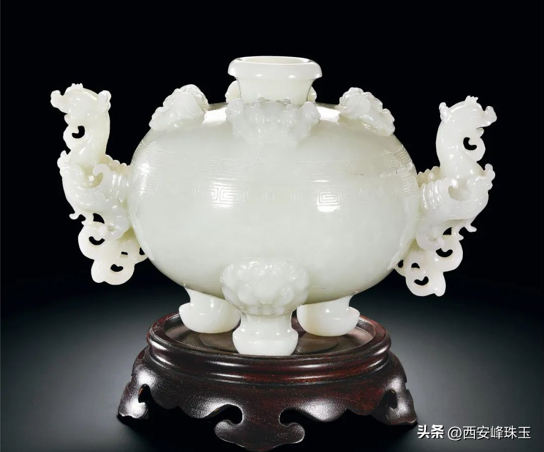 清乾隆白玉天鸡耳鼎式炉