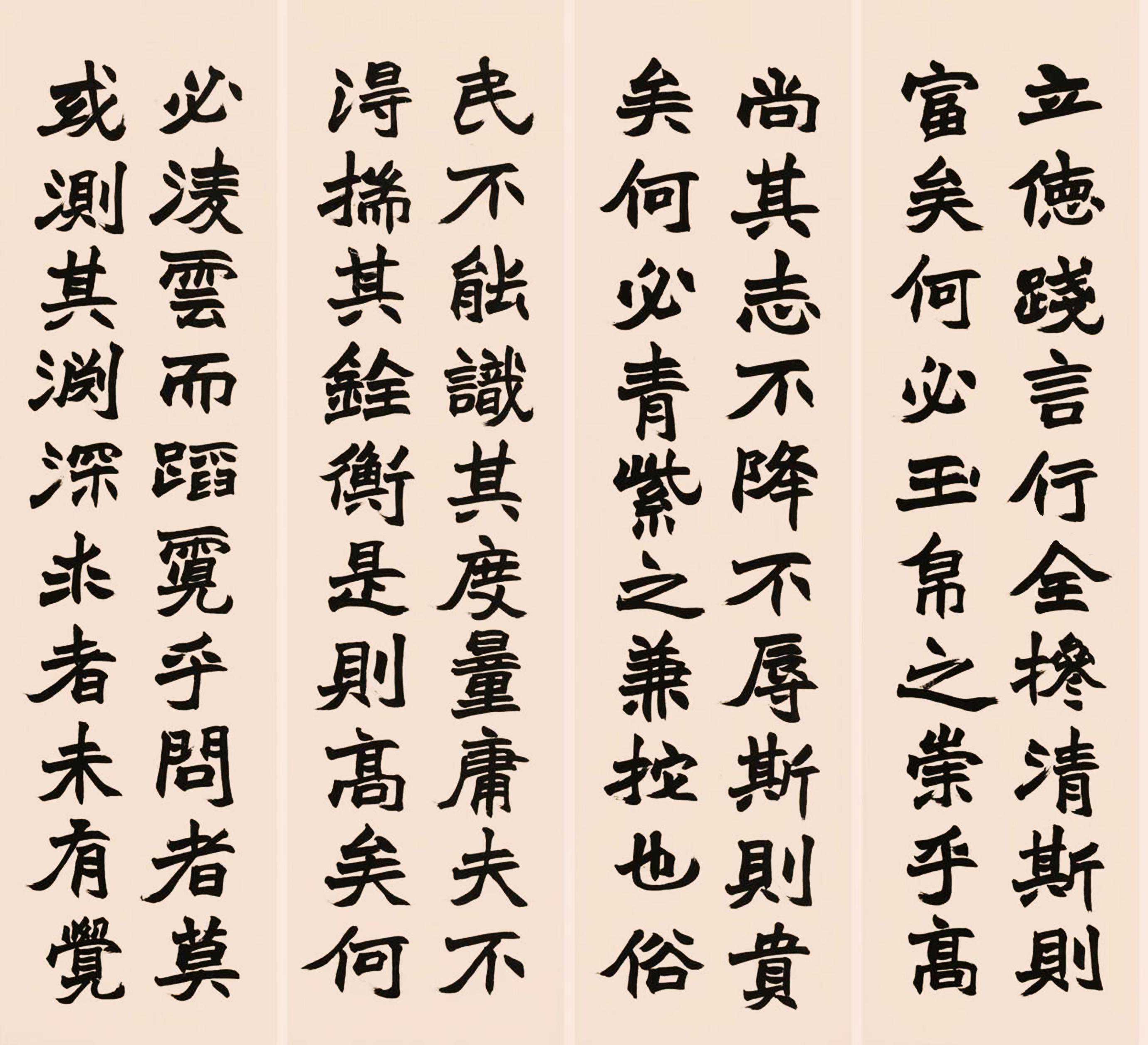 释文:立德践言行全操清,斯则富矣。何必玉帛之崇乎?高尚其志,不降不辱,斯则贵矣。何必青紫之兼拖也?俗民不能识其度量,庸夫不得揣其铨衡,是则高矣,何必凌云而蹈霓乎?问者莫或测其渊深,求者未有觉其短乏,是则深矣,何必洞河而沦海乎?四德苟备,虽室有县磬支窭,可以无羡乎铸山而煮海矣。身处鸟兽之群,可以不可乎?朱轮而华谷矣。《抱朴子·外篇·广譬第三十九》。