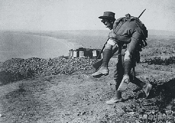 澳新军团中不可抑制的澳大利亚人。一名澳大利亚人将一名受伤的同志送往医院。达达尼尔海峡战役,约1915年