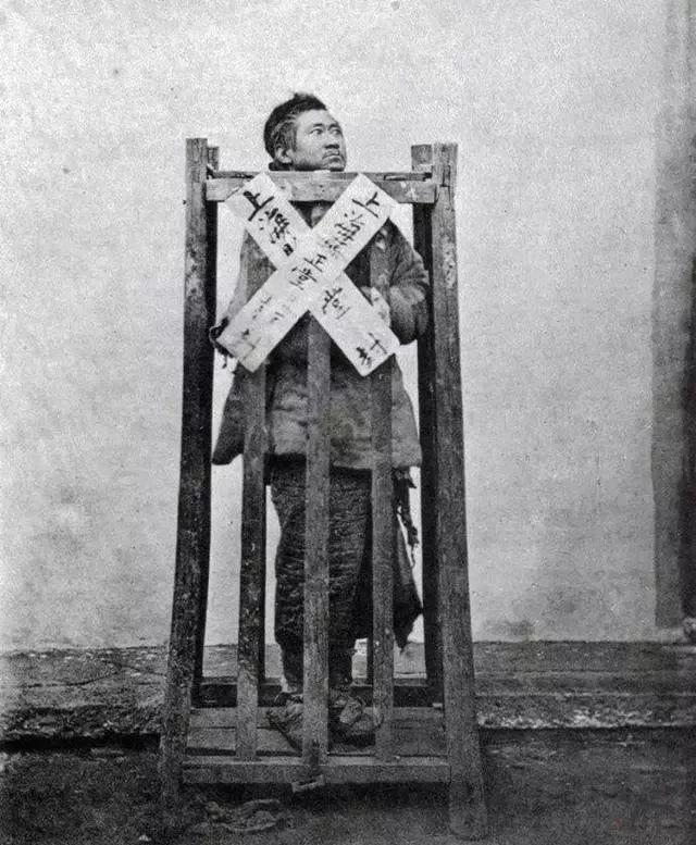 上海被判处“站笼”之刑的囚犯,他的眼神显得很桀骜不驯