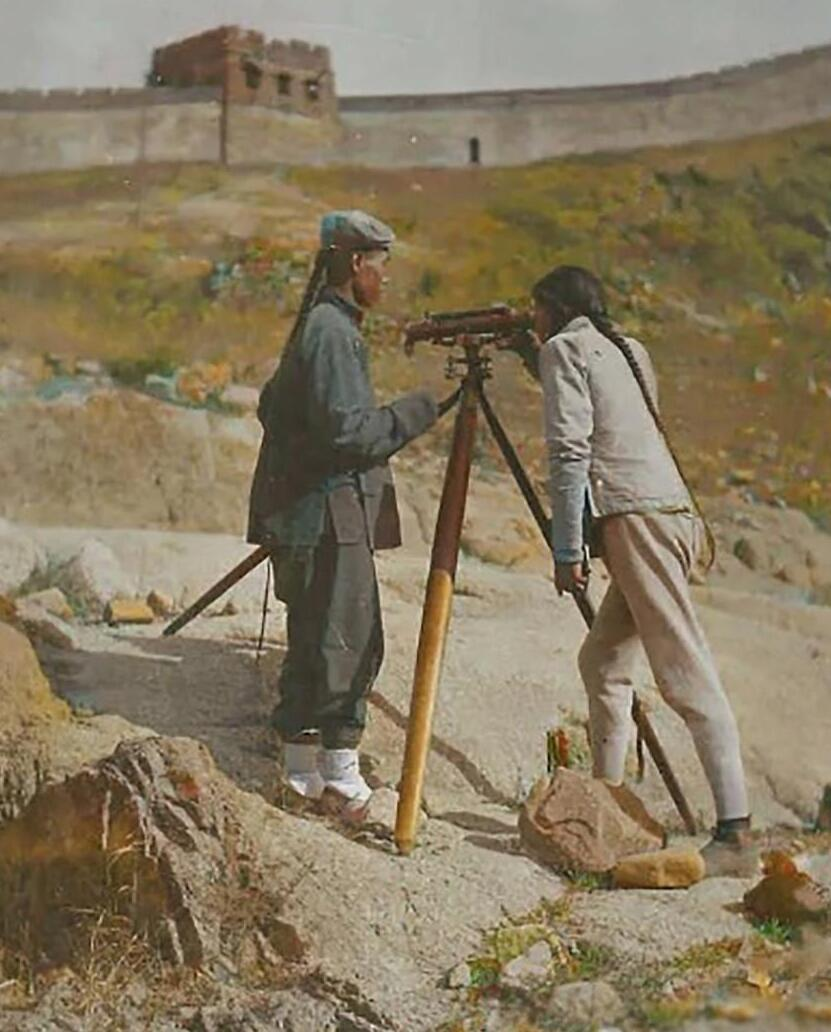 京张铁路施工测量人员认真测量