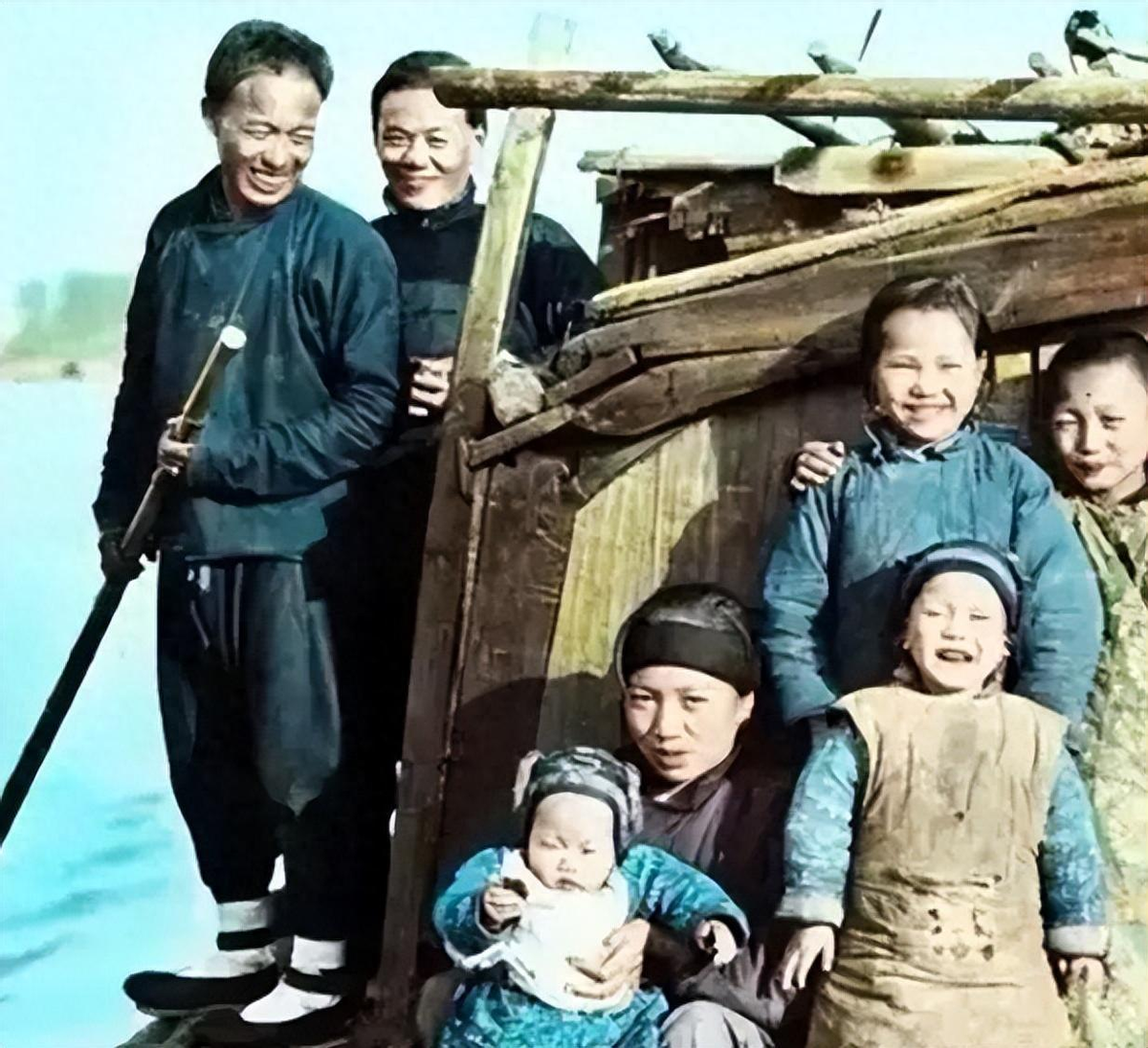 清末全家福合影罕见绝版真实彩色老照片,只有富贵人家才能留下这样的照片。