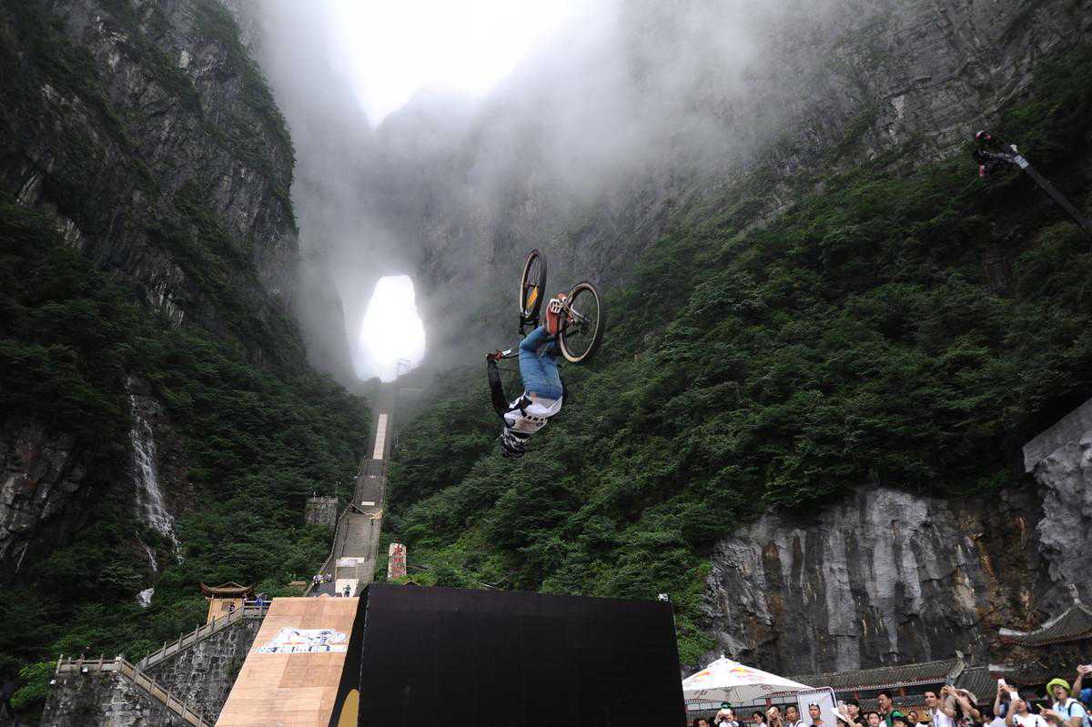 环保车到站后还需要走999级天梯,41°斜坡台阶陡立悬崖上,无论是站在下面往上看或者上面看下来都只有眩晕的感觉,这天梯曾吸引过多种极限运动的挑战者来到此挑战,那些惊险的纪录片在全球播放着。