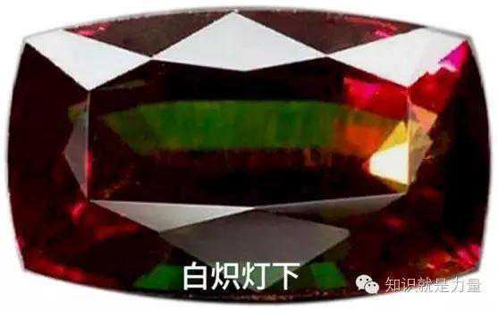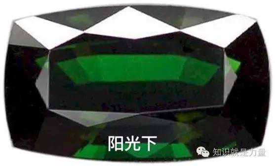 在不同光源下,碧玺颜色反差越大质量越好,碧玺变色效应就非常漂亮。比如下面的绿碧玺在阳光下呈现近似祖母绿绿色,灯光白炽灯或黄灯泡下出现红色橙色变色效应最好。世界上变色效应质量最好的是金绿宝石,也叫亚历山大变石。