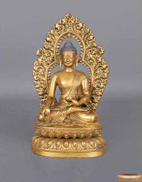 清(18世纪)铜鎏金药师佛像