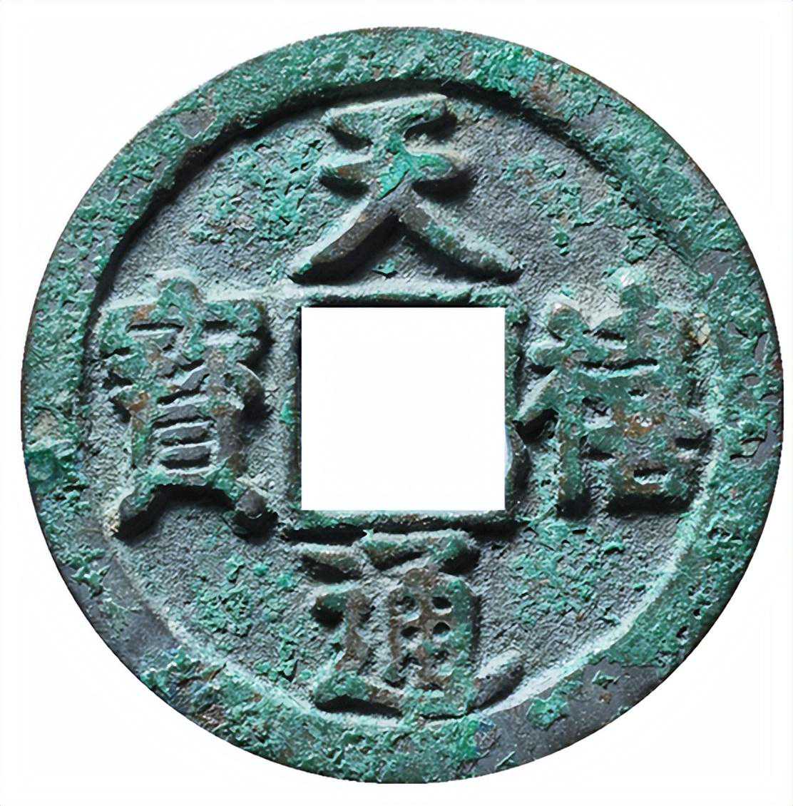 二、天禧通宝翘尾通天禧通宝翘尾通,是天禧通宝的名誉品,这个版别在书中的名字叫作大样大字版,直径一般在26.6毫米以上。最大的特征就是通字的最后一笔向上翘起。