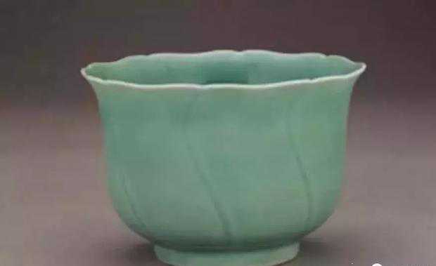 明宣德青釉葵瓣仰钟式碗台北故宫藏