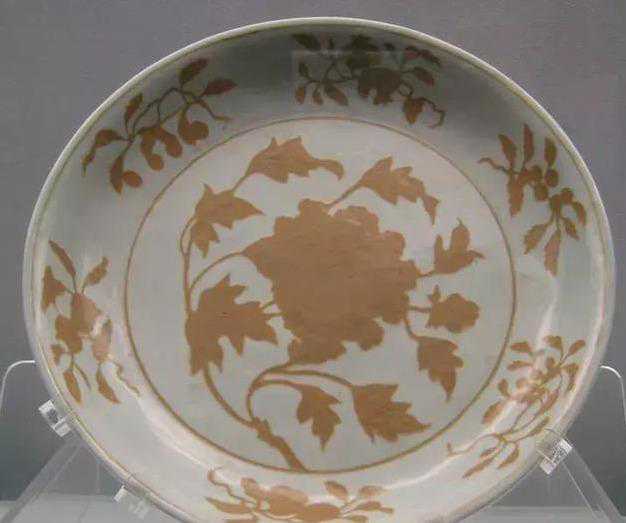 明宣德白地酱釉折枝花果纹盘