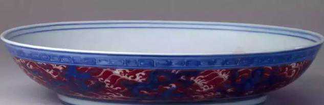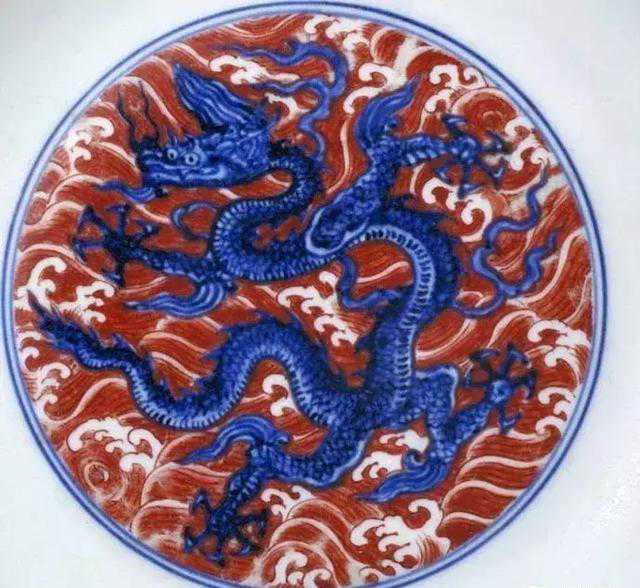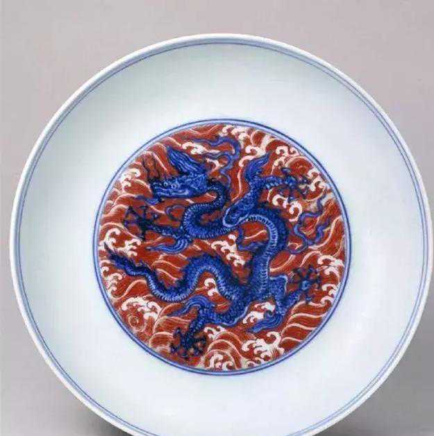 明宣德青花矾红彩海水龙纹盘-北京故宫