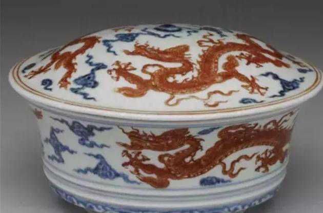 明宣德青花矾红彩云龙纹合碗-台北故宫