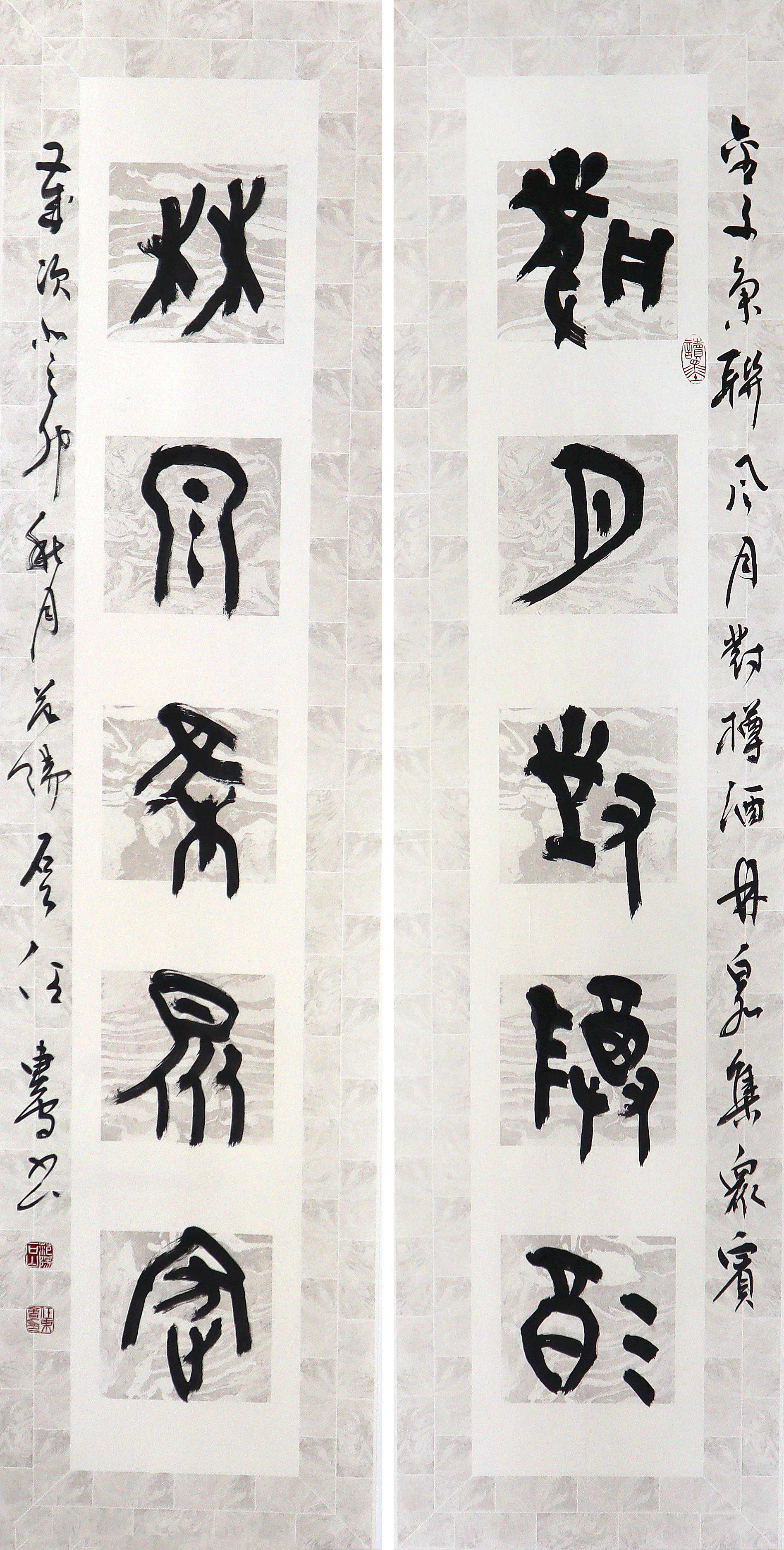 大篆对联《风月对樽酒林泉集众宾》134×34cm×22023年