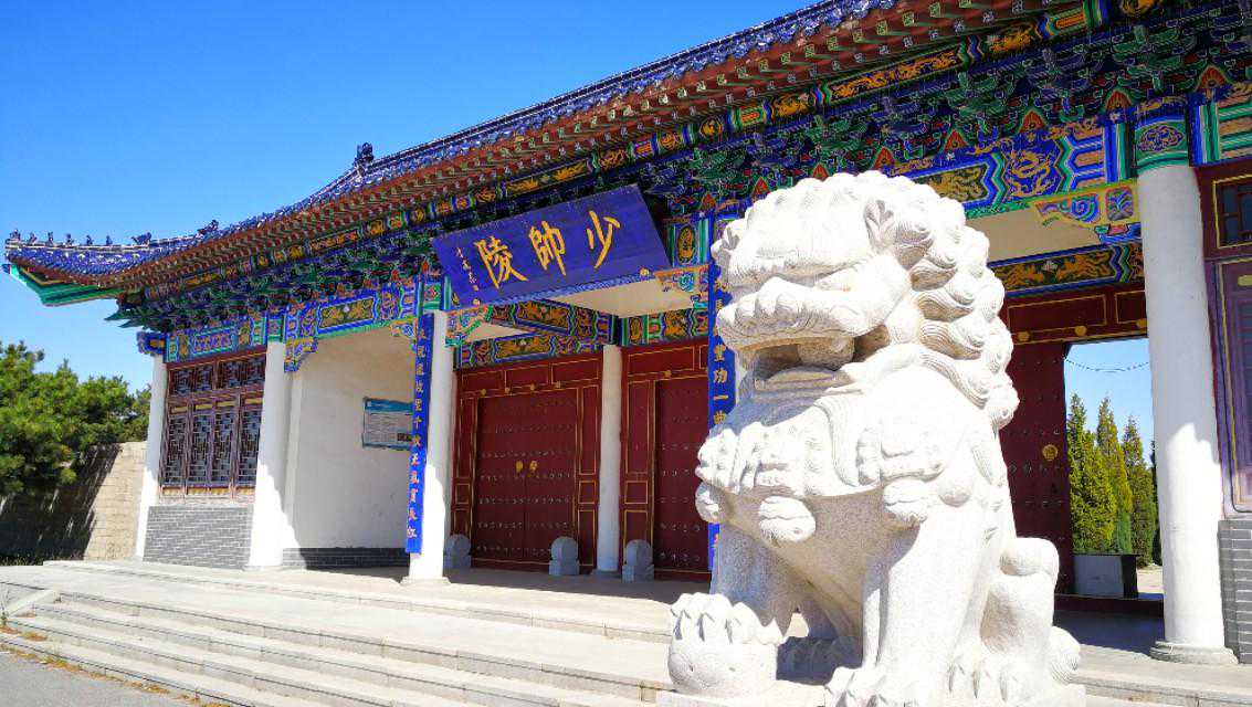 出了台安高速口就可以看到高大的宣传指示牌,经过20多公里的行驶,就来到了占地38平方公里的少帅陵风景区,也就是台安县西平森林公园所在地。只见占地面积达26000平方米的少帅陵整体风格与中山陵相像,大门正上方的牌匾“少帅陵”三个大字由时任国务院副总理李岚清所题写。