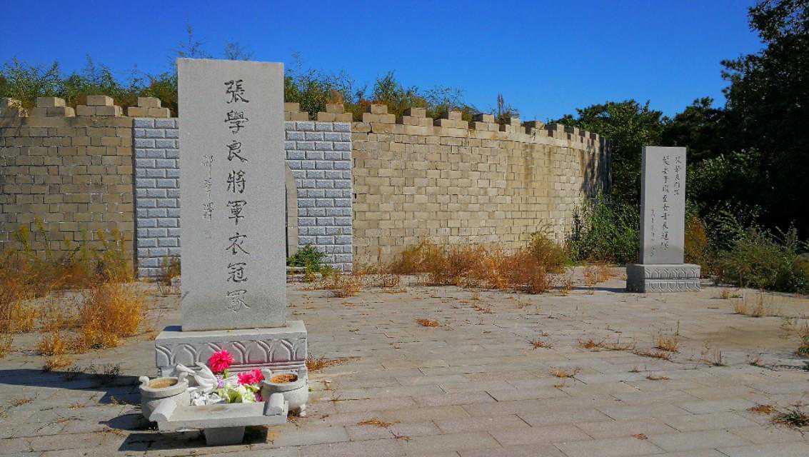 纪念堂后院是衣冠冢,有三块石碑,分别是“张学良将军衣冠冢”、“张学良将军发妻于凤至女士衣冠冢”、“张学良将军于凤至夫人衣冠荣葬祭典”。