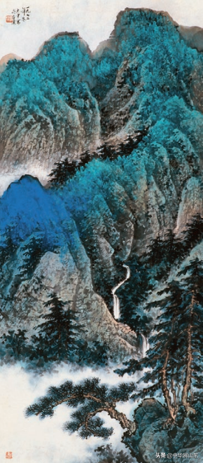 《青绿山水》(临摹谢稚柳作品)/64.8×29.5厘米/纸本水墨/1972年