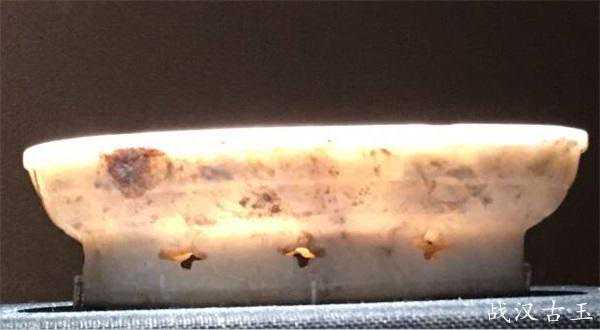 上图这件妇好墓出土的玉盘,上下两个部分都是掏膛形成的,底足掏膛后又进行了镂空雕花。