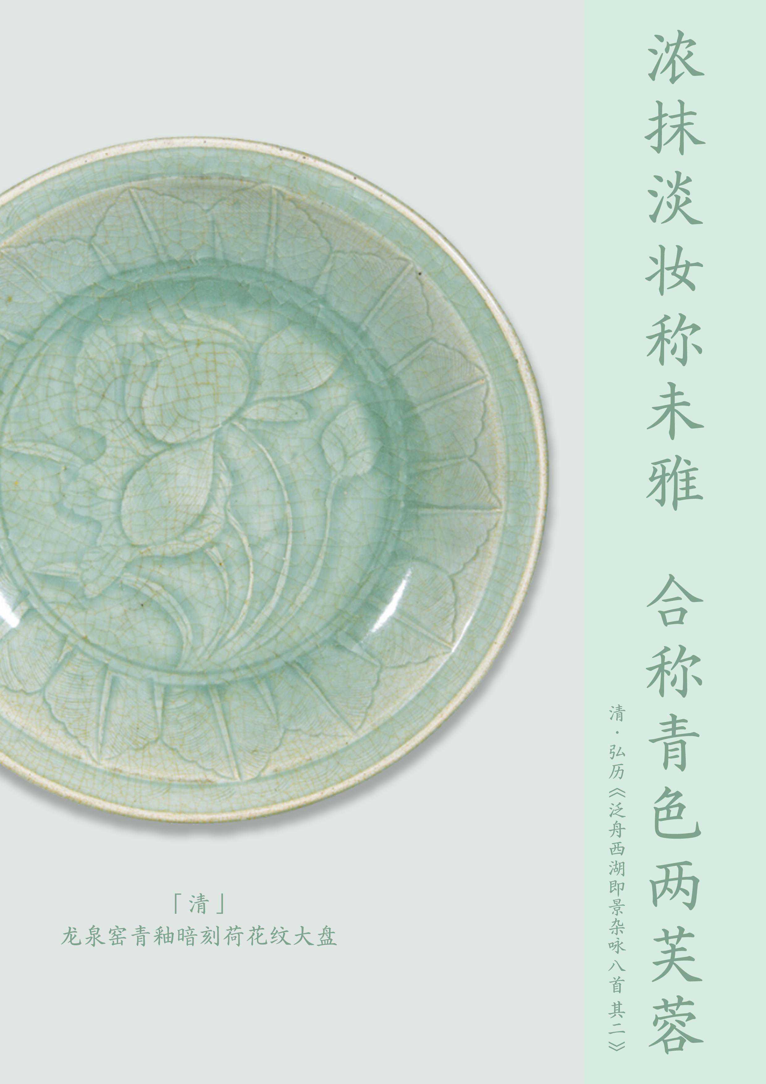 在文物中,最能体现青色之美的就是国画中的青绿山水,以及那些精美的瓷器。青瓷是中国瓷器的一大品类。它是在坯体上施以青釉(以铁为着色剂的青绿色釉),在还原焰中烧制而成,色彩极其丰富,青色系如缥瓷、千峰翠色、艾色、翠青、粉青、豆青、冬青、灰青等等。它们以瓷质细腻,线条明快流畅、造型端庄浑朴、色泽纯洁而著称于世。