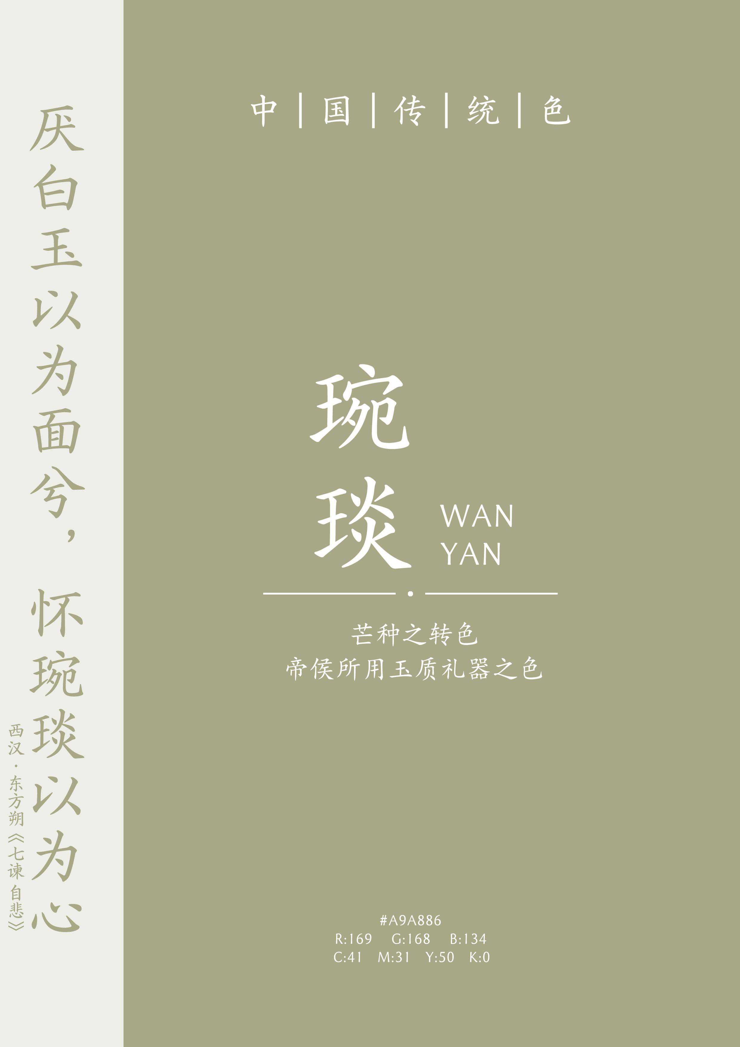 “厌白玉以为面兮,怀琬琰以为心。”(西汉·东方朔《七谏自悲》)琬琰(wǎnyǎn),即指美玉,芒种之转色,帝侯所用玉质礼器之色,既珍且贵。古人爱以玉喻人,因此常用“琬琰”比喻内心之美。“君子怀琬琰,不使涅尘淄”便用来形容品行高洁,志存高远,不受外物所影响。