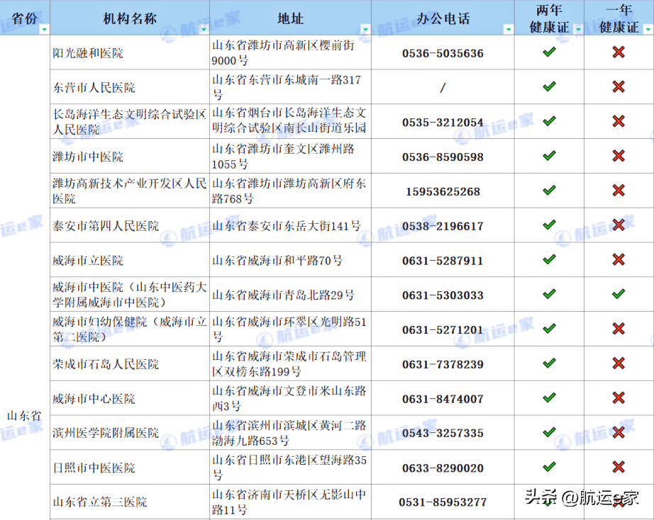 除了去海事局官网查询有海员体检资质的医院外,航运e家还帮大家整理了最新《全国海员体检机构最新版》供大家查询。
