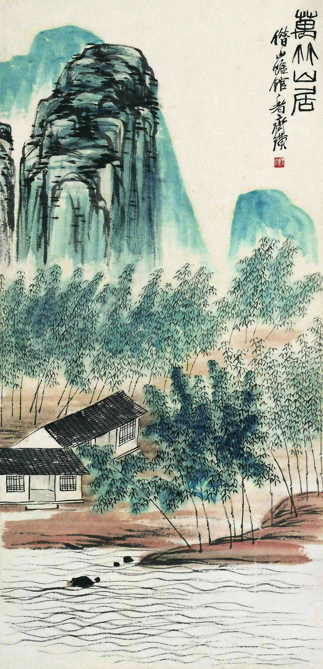 齐白石万竹山居纸本水墨102.5×49.5cm北京画院藏