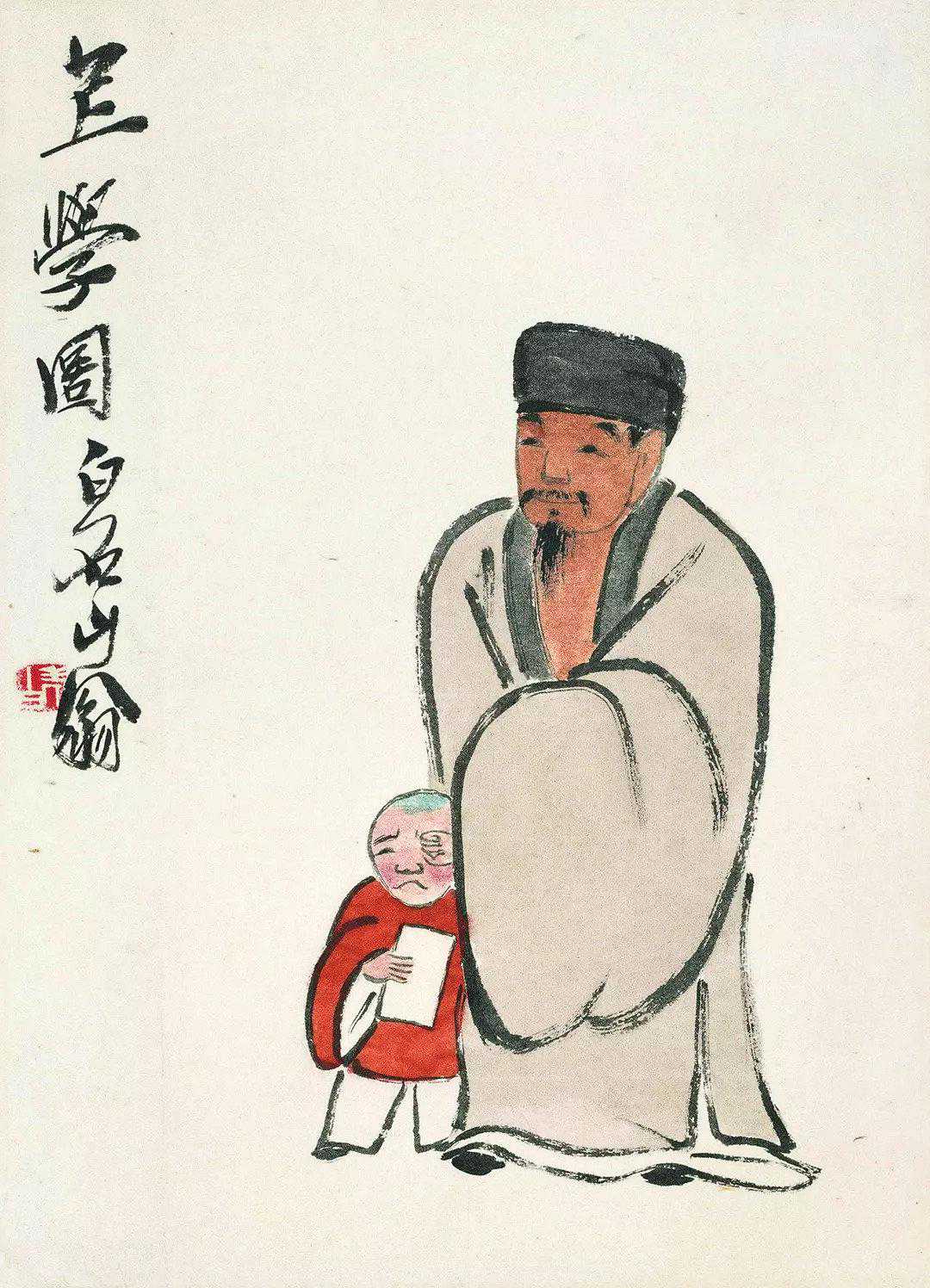 齐白石上学图纸本设色34.5×25.0cm北京画院藏