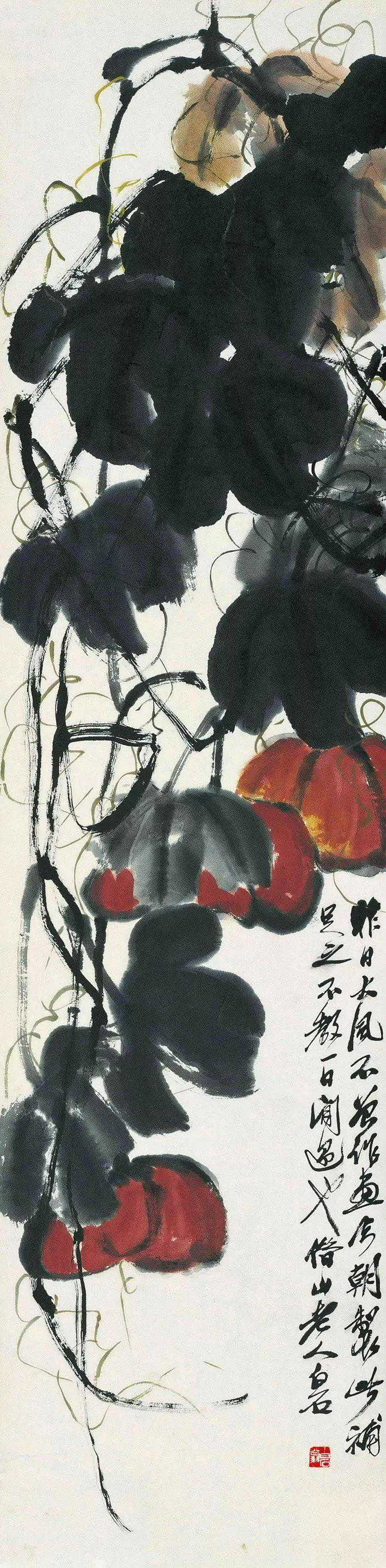 齐白石南瓜纸本设色139.0×34.0cm北京画院藏