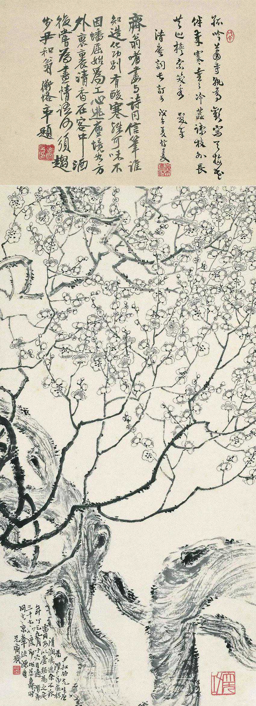 齐白石墨梅纸本墨笔116.0×42.5cm1917年北京画院藏