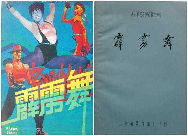 美国电影《霹雳舞》进入中国后的海报和台本。《霹雳舞》和另一部印度电影《迪斯科舞星》共同掀起了1980年代的热舞浪潮