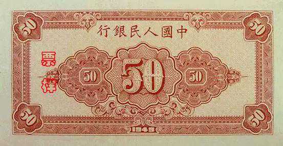 第一套人民币1948年12月1日开始发行,共12种面额62种版别,其中1元券2种、5元券4种、10元券4种、20元券7种、50元券7种、100元券10种、200元券5种、500元券6种、1000元券6种、5000元券5种、10000元券4种、50000元券2种(1949年发行的正面万寿山图景100元券和正面列车图景50元券各有两种版别)。