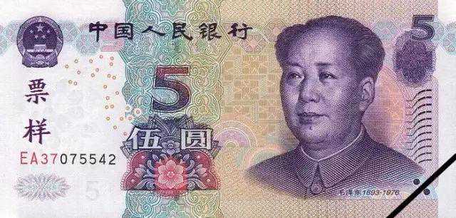 第五套人民币发行于建国50周年之际,将毛泽东的肖像作为唯一的主景图案设计在所有面额人民币的票面上,辅面的主景图案选用有代表性的寓有民族特色的图案,充分表现了中国悠久的历史和壮丽的山河。也是现在正在流通的货币。