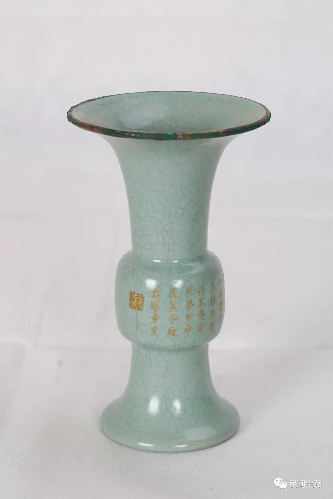 郑州市天中艺术博物馆馆藏宋代汝窑镶口刻字花觚