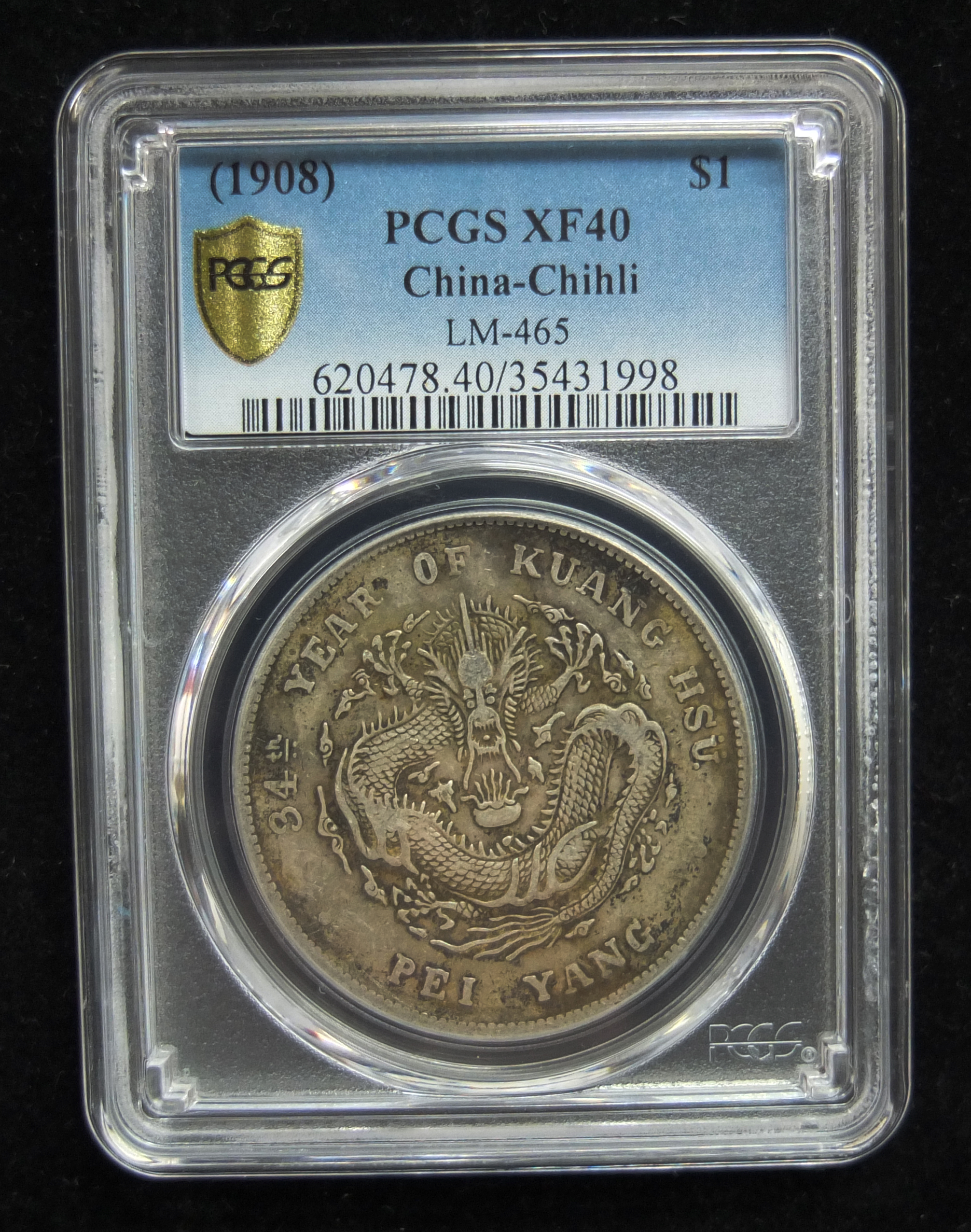 第20号拍品:光绪元宝北洋造34年库平七钱二分PCGSXF40102