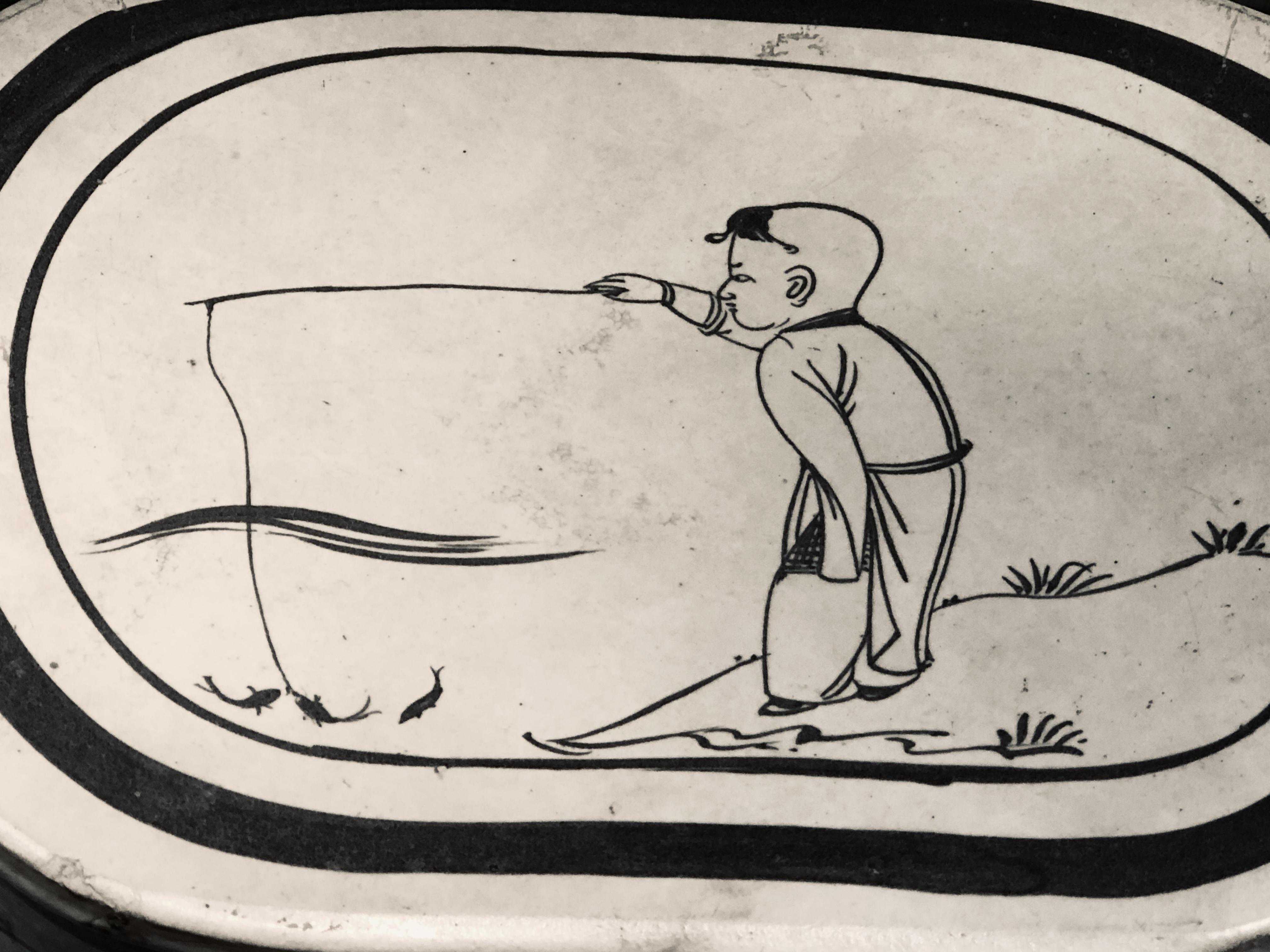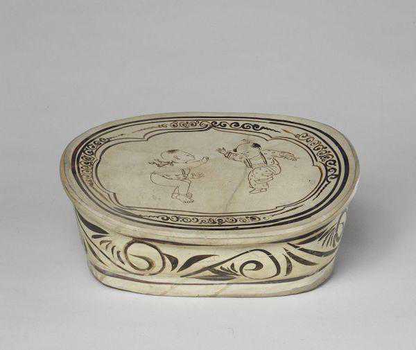 婴戏纹图案以及孩童造型的瓷塑是我国南北方瓷窑都喜爱的装饰题材之一,描写儿童生活的画面很多,耀州窑、定窑、景德镇窑、磁州窑系烧制的瓶、罐、盘、碗、枕等器物上最为常见。