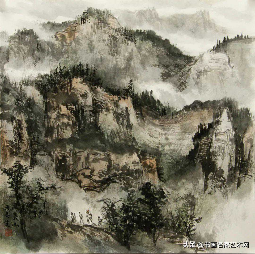 安生秉承“行万里路,读万卷书”的治学之道,长年游历名山大川,师法自然,搜妙创真。一路的山重水复、柳暗花明,一路的风土人情、人文积淀,使他俯仰乾坤、静察天籁,悟得“笔墨当随时代”,艺术贵于创意的真谛。于是,笔底挥写出《春江晨帆》的雾散霞飞,轻舟逐浪,水天空阔,春色无边;《夏日清荫》的群峰参差,丛林积翠,流水涂踪,墨韵滋实;《秋山林静》的蜿蜒山路,半山短亭,红树染霜,秋气旷远;《雪掩山村》的清森寂静,雪掩村居,月笼寒山。作为跋涉的行者,安生敏锐的剪裁四时的功力是显而易见的。南北山水的地貌特征、风物特色刻画得清新可辨。各不相同。