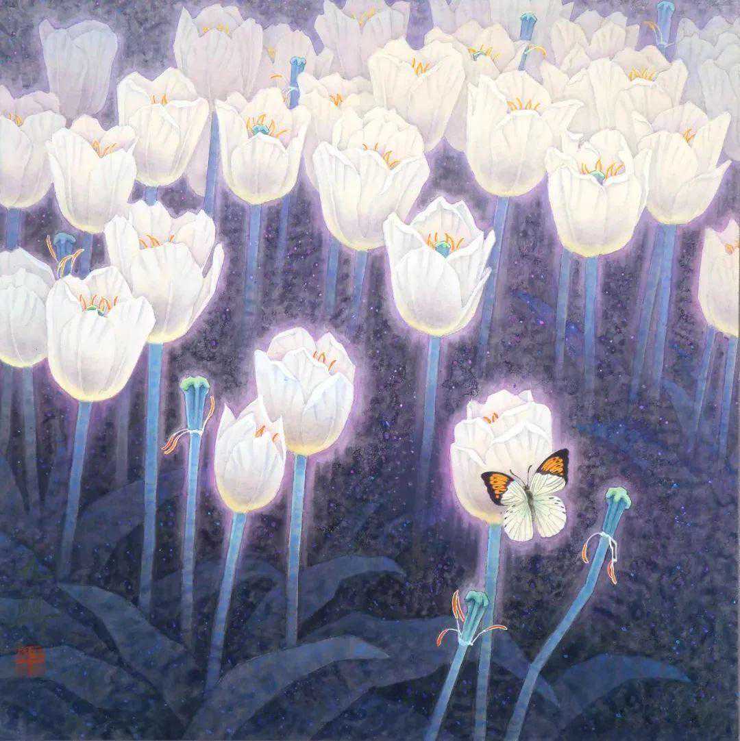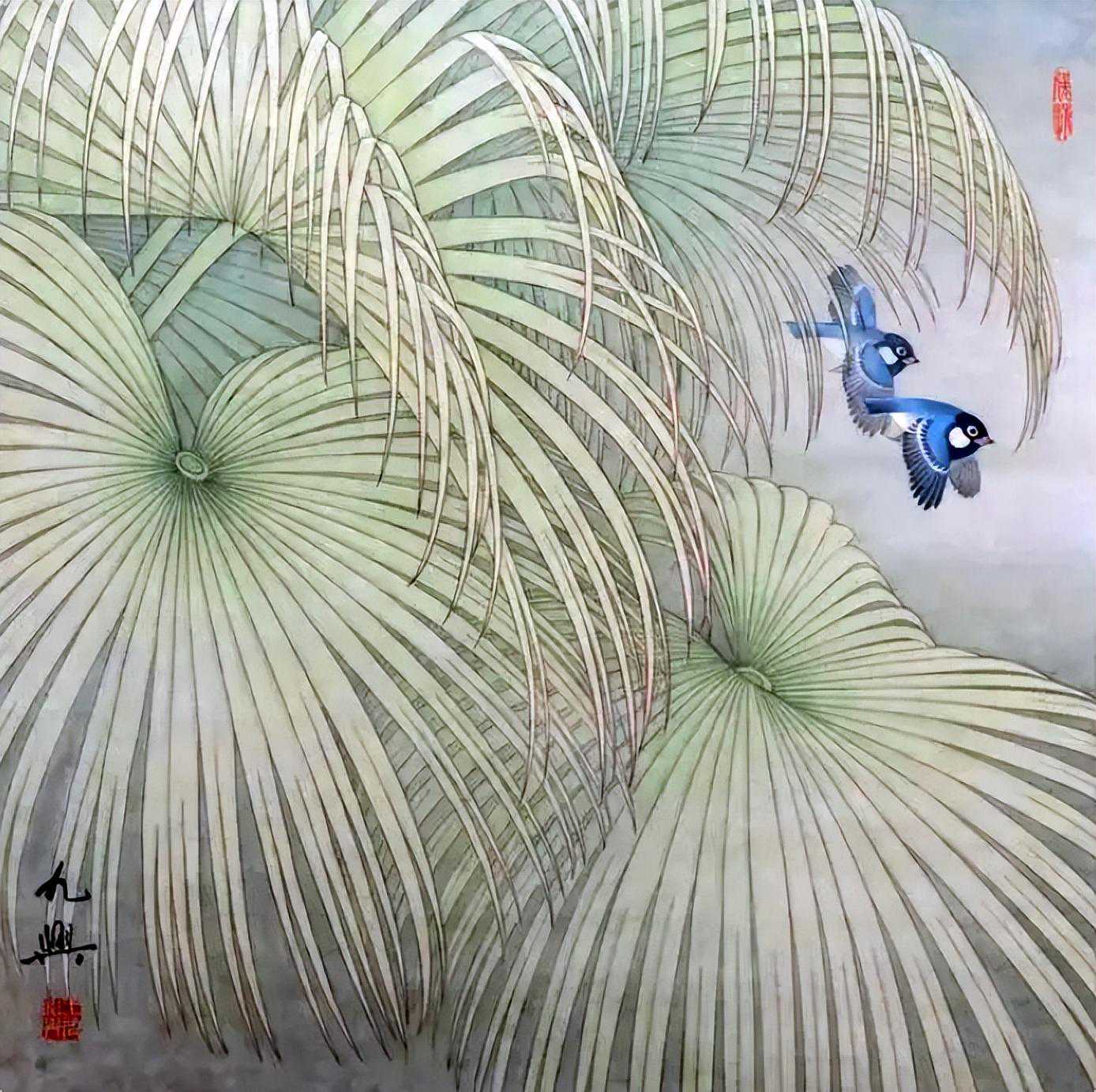 他的作品充满了清新的气息和生动的活力,每一幅画都仿佛在讲述一个动人的故事。他的工笔画风格细腻入微,色彩鲜明,给人一种清爽烂漫的感觉。他的作品不仅展示了他的艺术才华,也反映了他的生活态度和对美的追求。欣赏他的作品,就如同欣赏一首美丽的诗,一幅动人的画,让人心旷神怡,流连忘返。