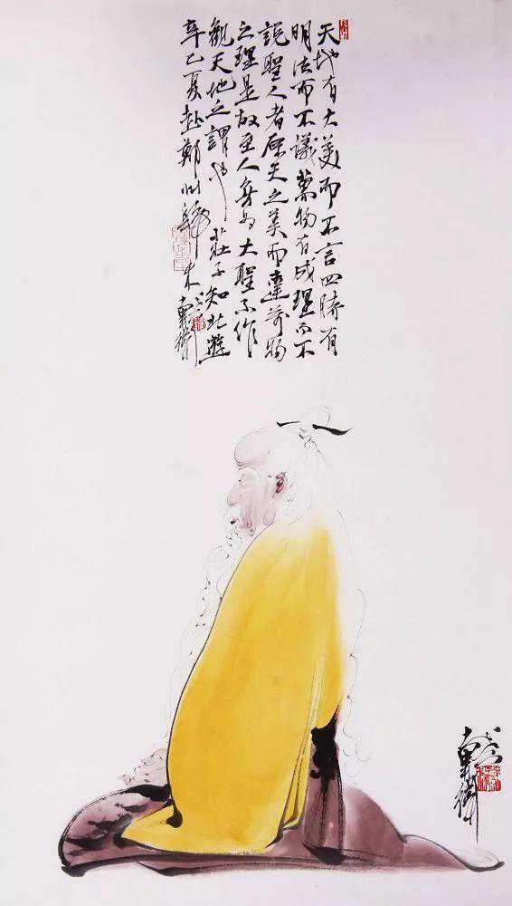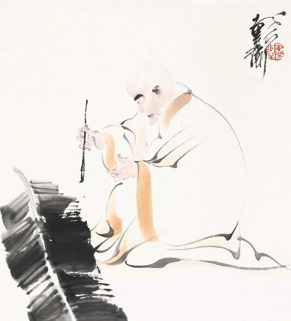 戴卫同志是一个天才人物,他的东西流出来都是牛奶。他的画很奔放、线条流畅,是流畅撒、奔放派,很有特点,他所画历史题材,如郑板桥、达摩、庄予等,笔墨简练而意境深邃,这说明历史题材在现代人的眼里、手里,也能画出它的高度来。并对历史作出新的解释,这就是历史的作用,也就是传统的作用。