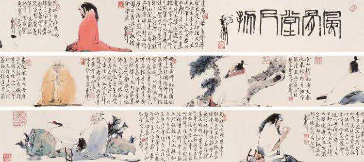我喜欢戴卫的小品。同时也喜欢他的大幅,觉得有哲理、有思想戴卫很沉得下去,他不光是动手,而且动脑子画画,戴卫在藻鉴堂所画的画,还属于“大路货”的东西,但是,从那以后他很快转入了自己的探索,他以它山之石攻自己的面,他把山水,花鸟以及书社中的东西融进自己的人物画,又很自然,很美,我觉得他的探索是挺认真的
