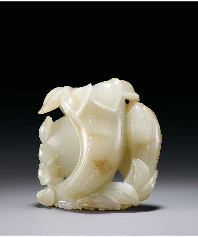 匜是古代水具,最早出现于西周中晚期青铜器中,宋代始出现用玉製作的匜,至明代广为流行。本器形制古朴大方,抛光精緻,纹饰细腻兼具抽象古朴之风。