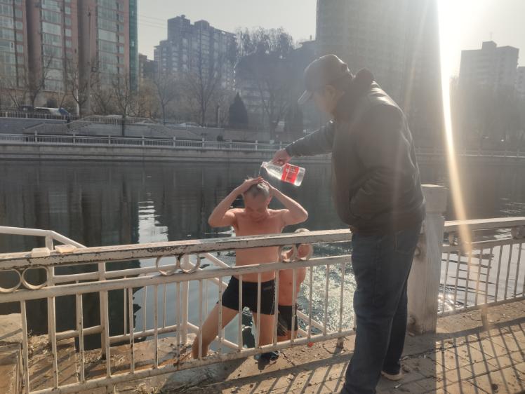 “这些设施都是我们自己做的,北京大部分冬泳场所都是这样的。另外我们还会互相提醒,有人在水里待得时间长了就赶快让他上来,在室外游泳不能逞能。而且只要有人在水中游泳时,岸上一定会有同伴照看。”一位冬泳爱好者说。