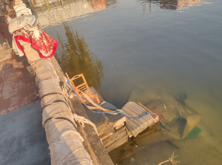 八一湖畔冬泳者自己搭建的台阶
