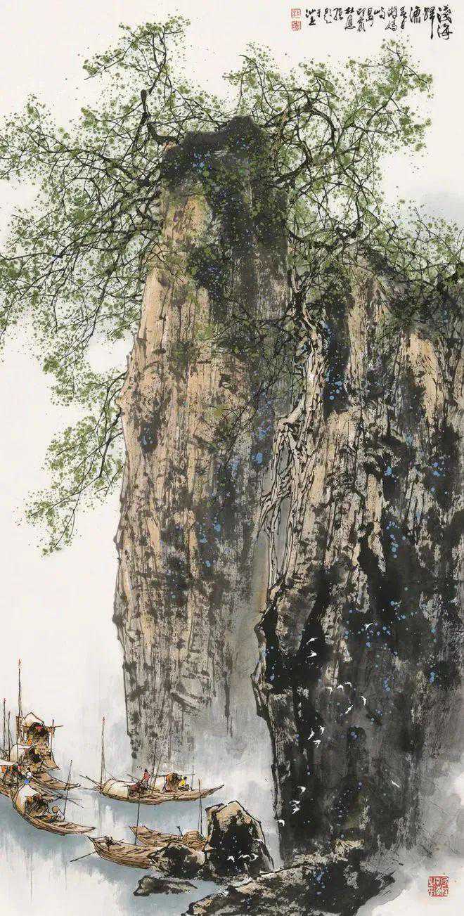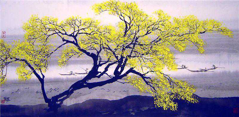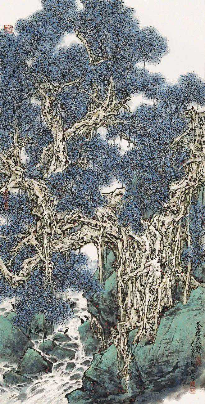 他对家乡的榕树一往情深,百画不厌,因此才能敏锐地捕捉榕树在江边月下最美的风姿。
