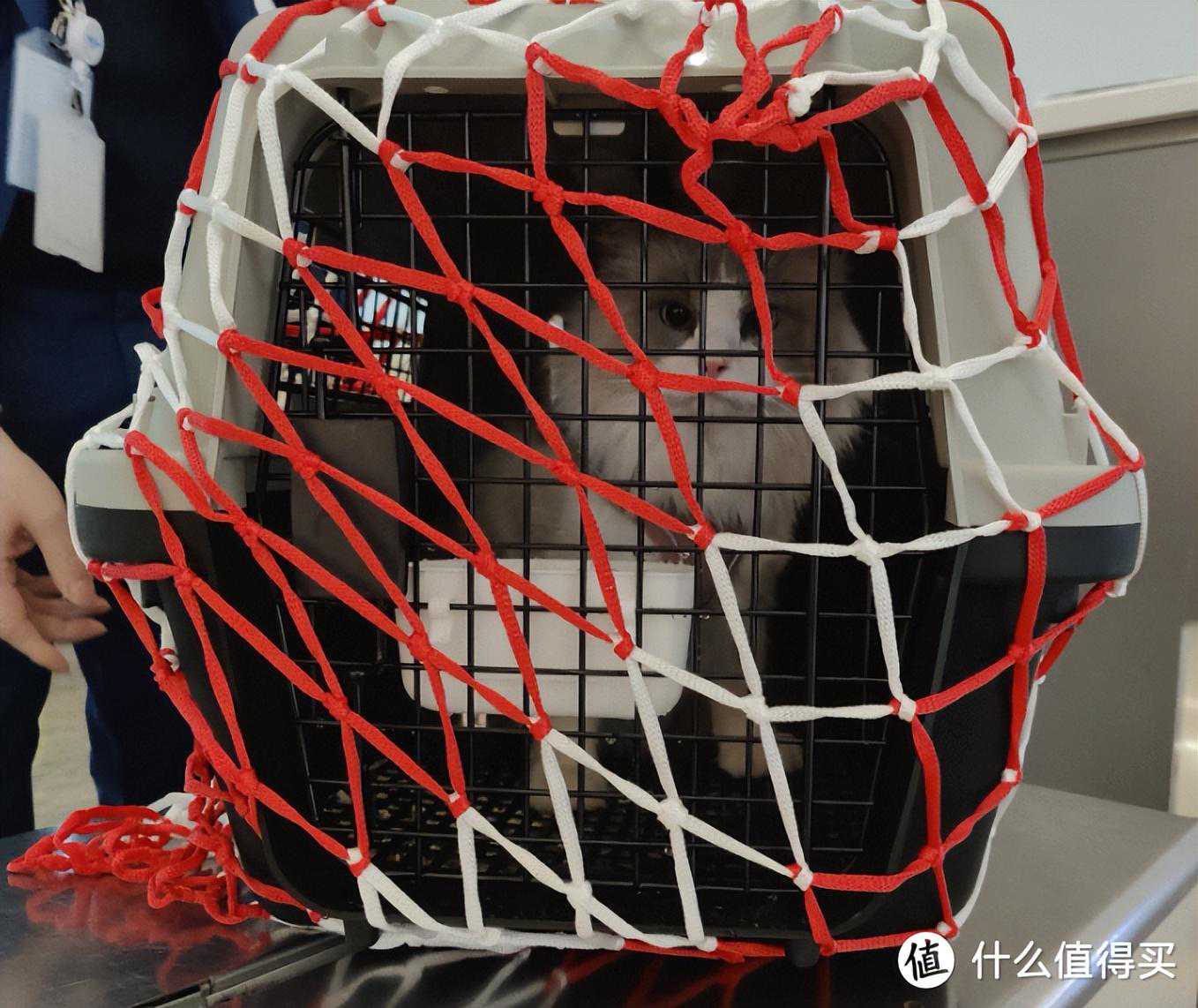 时间差不多了的话,则前往机场的行李打包服务处,在此处为宠物托运箱套上网兜并捆绑好轧带加固,这样即使宠物箱子有所破损,宠物也不至于跑丢。
