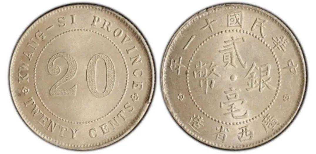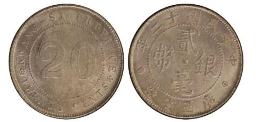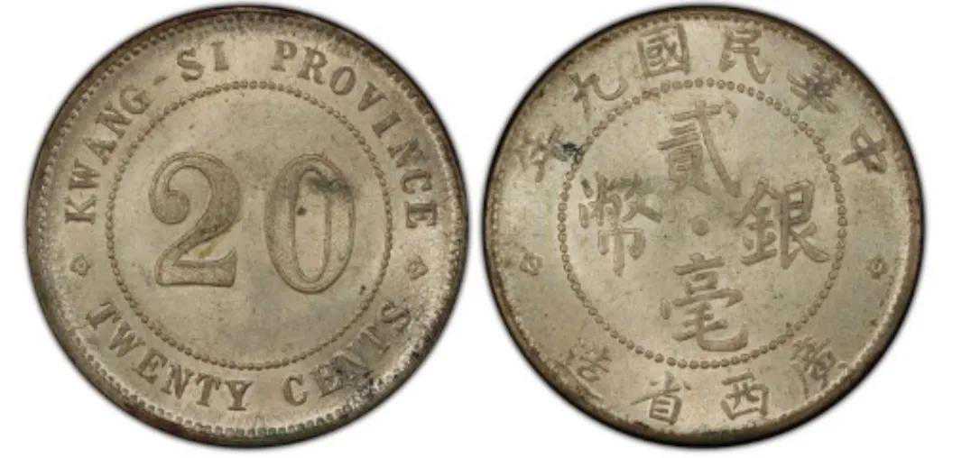 民国时期,随着广东贰豪银辅币的发行火热,广西也想发行自己省份的桂系贰豪银辅币。所以在1919年从广东搬来旧机器生产自己省份的贰毫银币,广西这时候还是民国的旧桂系“陆荣延”当家做主。发行了民国八年与九年两个年号,与广东贰豪的样式比较接近。