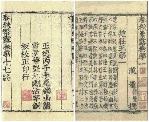 明正德十一年锡山华坚立雪堂活字印本《春秋繁露》,中国国家图书馆藏
