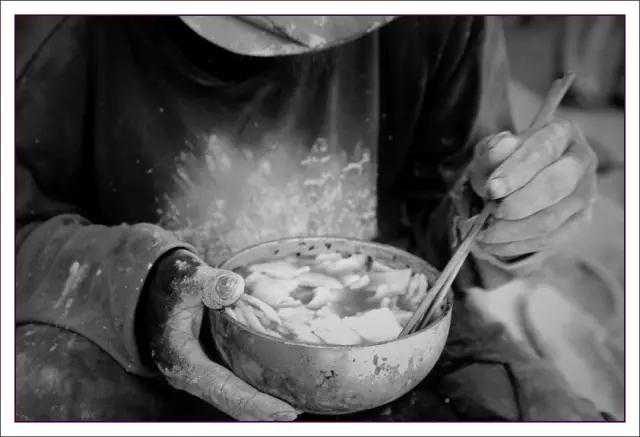 一日一顿白皮面,没油没菜只放盐。