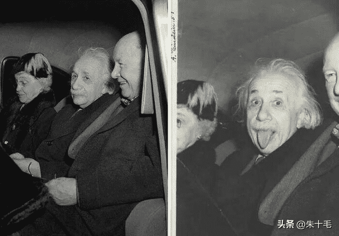 爱因斯坦伸舌头前一秒钟,当时他与另外两位大咖参加完晚会,面对记者突然身材舌头。