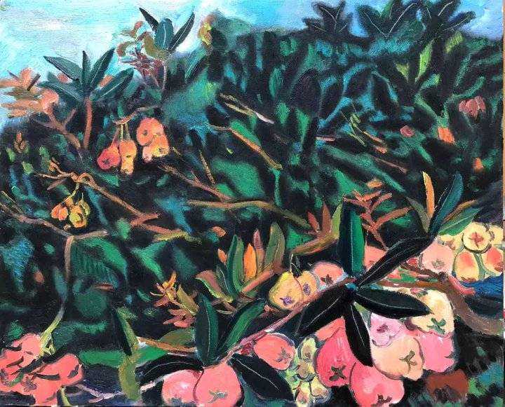 海南-芒果丰硕花满山65x80cm布面油画2020