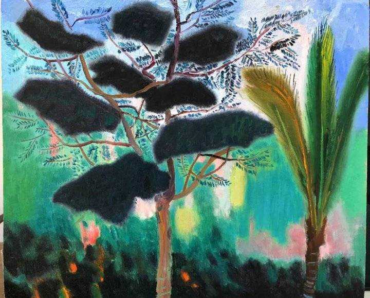 海南-火焰花与贝叶棕140x120cm布面油画2020
