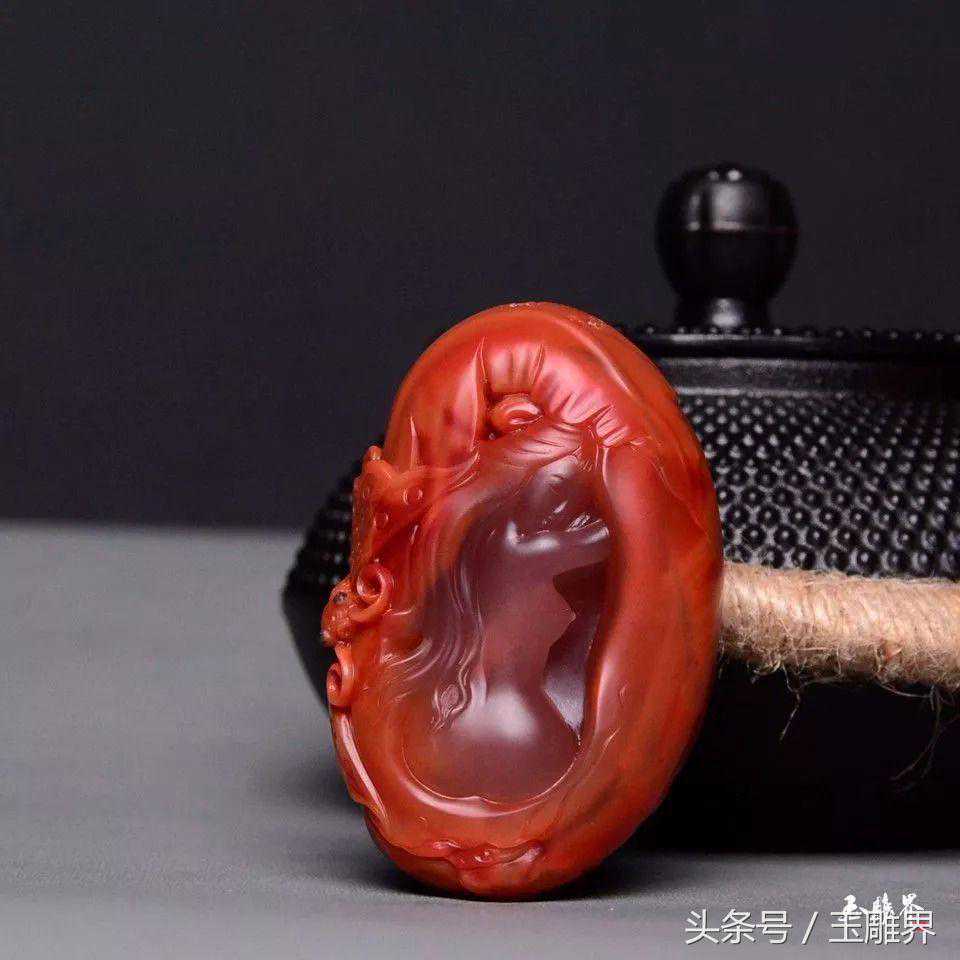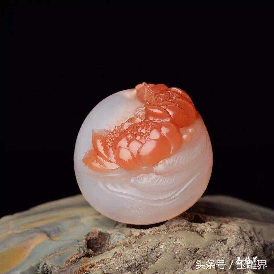 南红颜色分类较多,有纯红色,有冰飘、红白料、缠丝料等,每一种都各有千秋。对于玉雕师来说,纯色的料子可能不能完全表达出自己的创意及工艺,创作乐趣相对较低,所以,冰飘、红白料、缠丝料变成了创作首选,结合料子的特点,巧用冰飘中的红色部分、红白料中的红白、缠丝料中的纹路等。