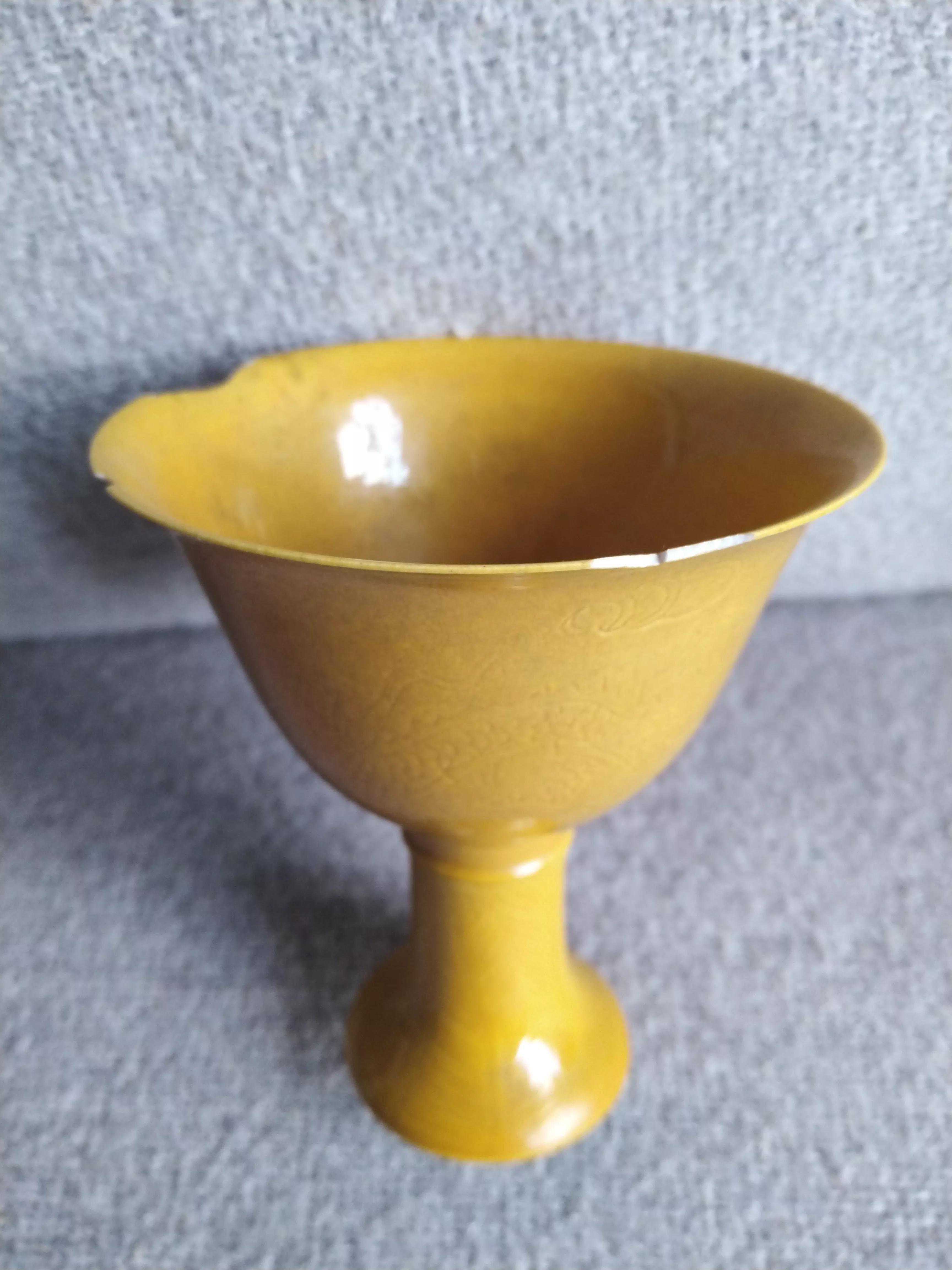 皇家官窑瓷嘉靖内府龙纹黄釉高脚杯