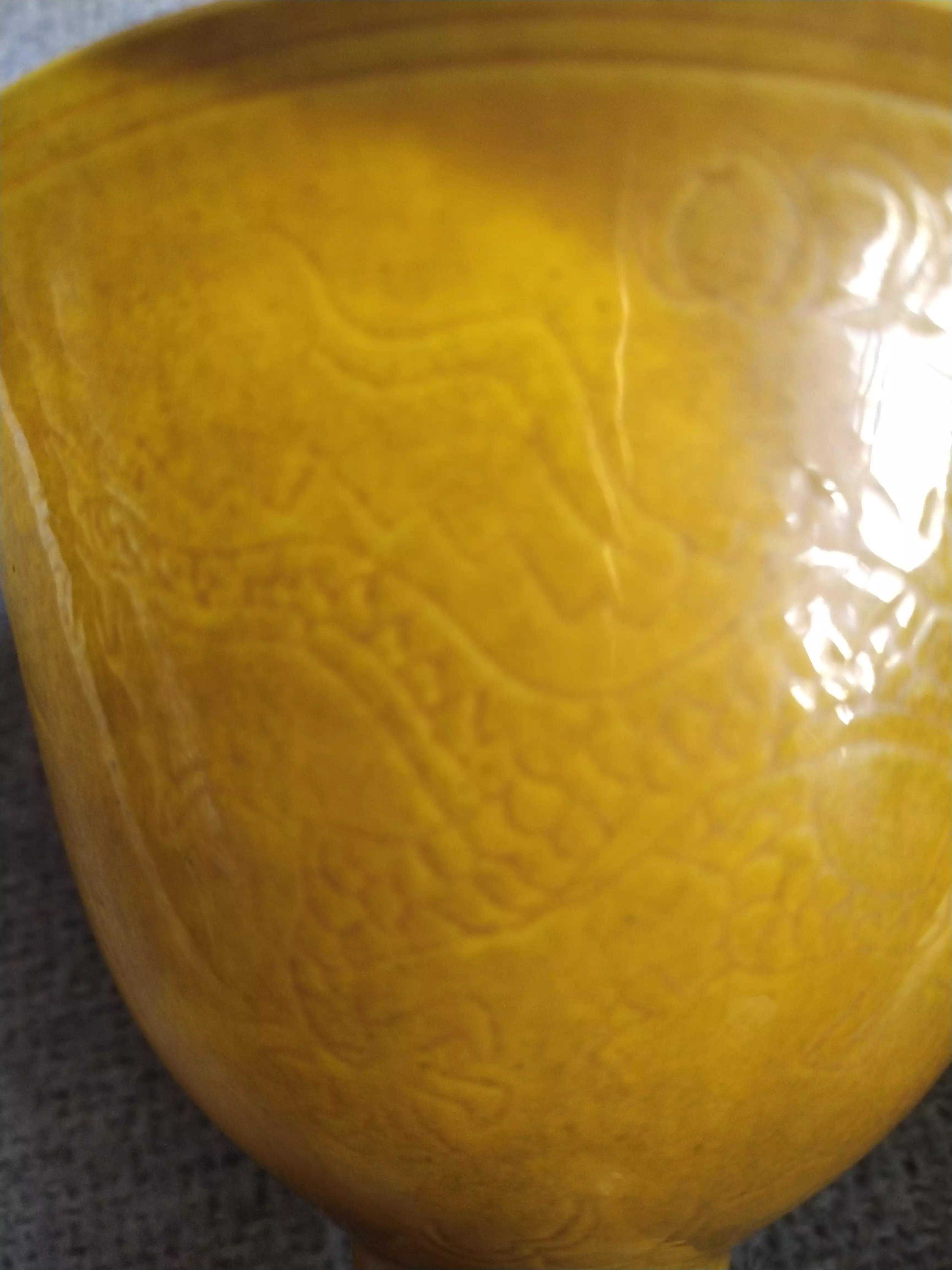 简介有时候残器也是一种欣赏学习,尤其,皇家用品难得一见。偶得嘉靖黄釉杯,杯外壁暗刻五爪龙纹,暗刻“内府”二字,杯柄暗刻芭蕉纹饰。薄胎黄釉,呈半透明。底款书写规整,白釉亮白。口沿三处残缺,有点可惜,其他完好。用手电观察呈半脱胎透明状,器壁暗刻龙纹,五爪青花款书写规整,亮白釉润泽“内府”二字难得所见,下面微...